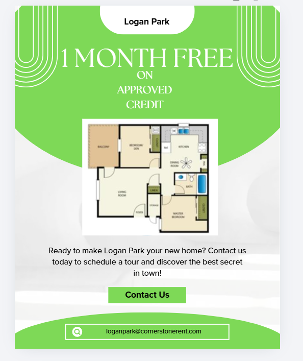 Hurry! Logan Park is offering ONE MONTH FREE! Contact our leasing office for more information!